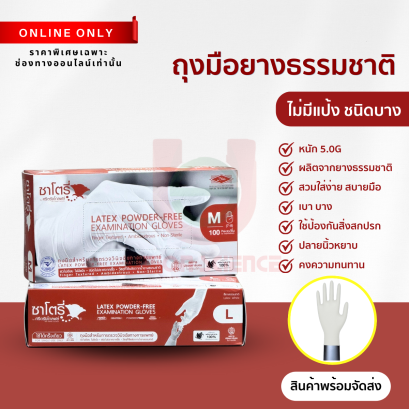 ถุงมือดีสโพสไร้แป้ง Satory (กล่องน้ำตาล) : ถุงมือยางชนิดไม่มีแป้ง ผลิตจากน้ำยางธรรมชาติยี่ห้อ ซาโตรี่ SATORY ถุงมือยางสีขาว กล่องสีน้ำตาล